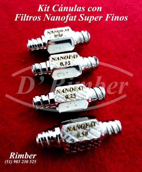 KIT CANULAS PARA CELULAS MADRE CON FILTROS NANOFAT SUPER FINOS DESCRIPCIÓN: 04 can 2.5 x 25 blr punta klein 10 agujeros espiral con sonda de limpieza