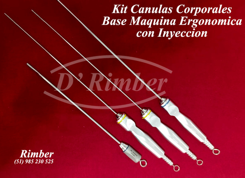KIT CANULAS CORPORALES BASE MAQUINA ERGONOMICA CON INYECCIÓN DESCRIPCIÓN: ✅02 Can 2.5 x 30 base maquina ergonomica punta klein con sonda de limpieza